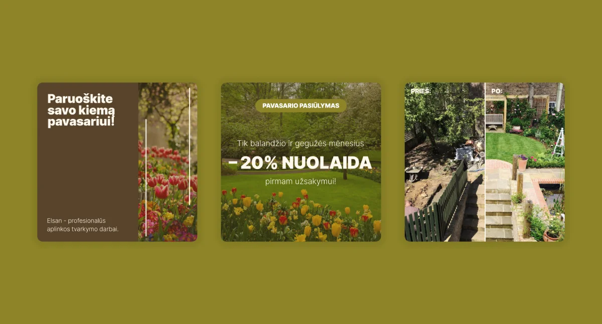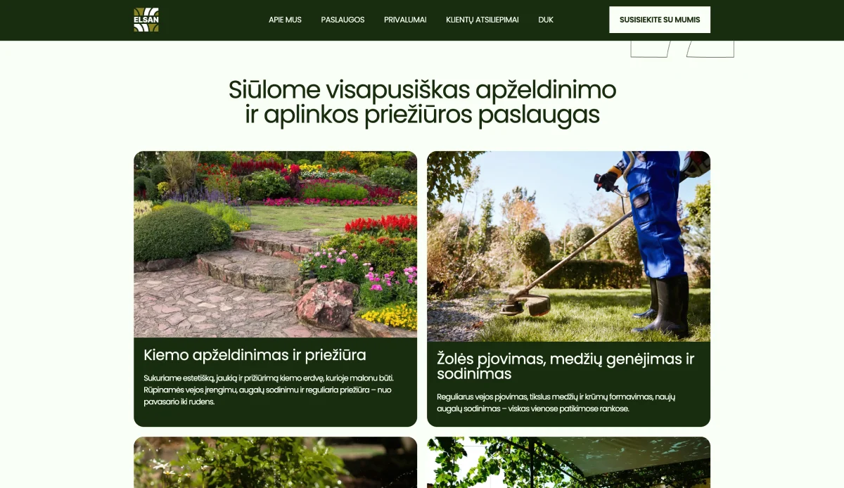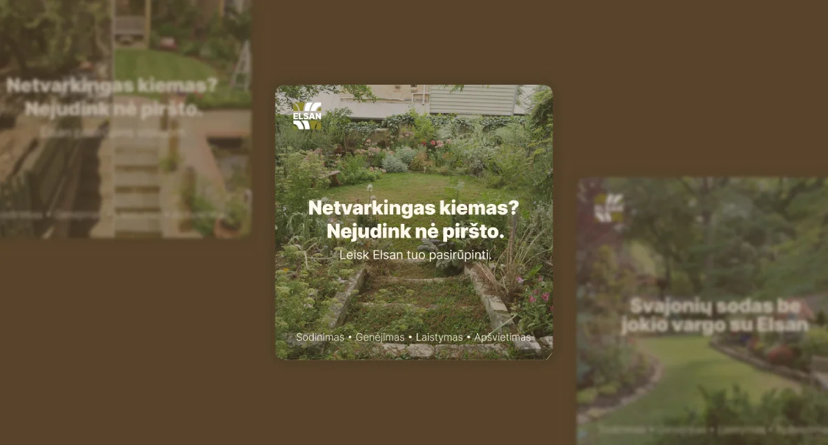 Elsan yra įmonė, teikianti kiemų ir terasų priežiūros paslaugas. Iš pradžių jie kreipėsi dėl „Meta Ads“ kampanijų, skirtų pritraukti pirmuosius klientus. Po sėkmingo starto tapo aišku, kad tolimesniam augimui reikia svetainės – platformos, kuri galėtų veikti kaip pagrindinis užklausų generavimo įrankis tiek „Meta“, tiek „Google Ads“ kampanijoms.