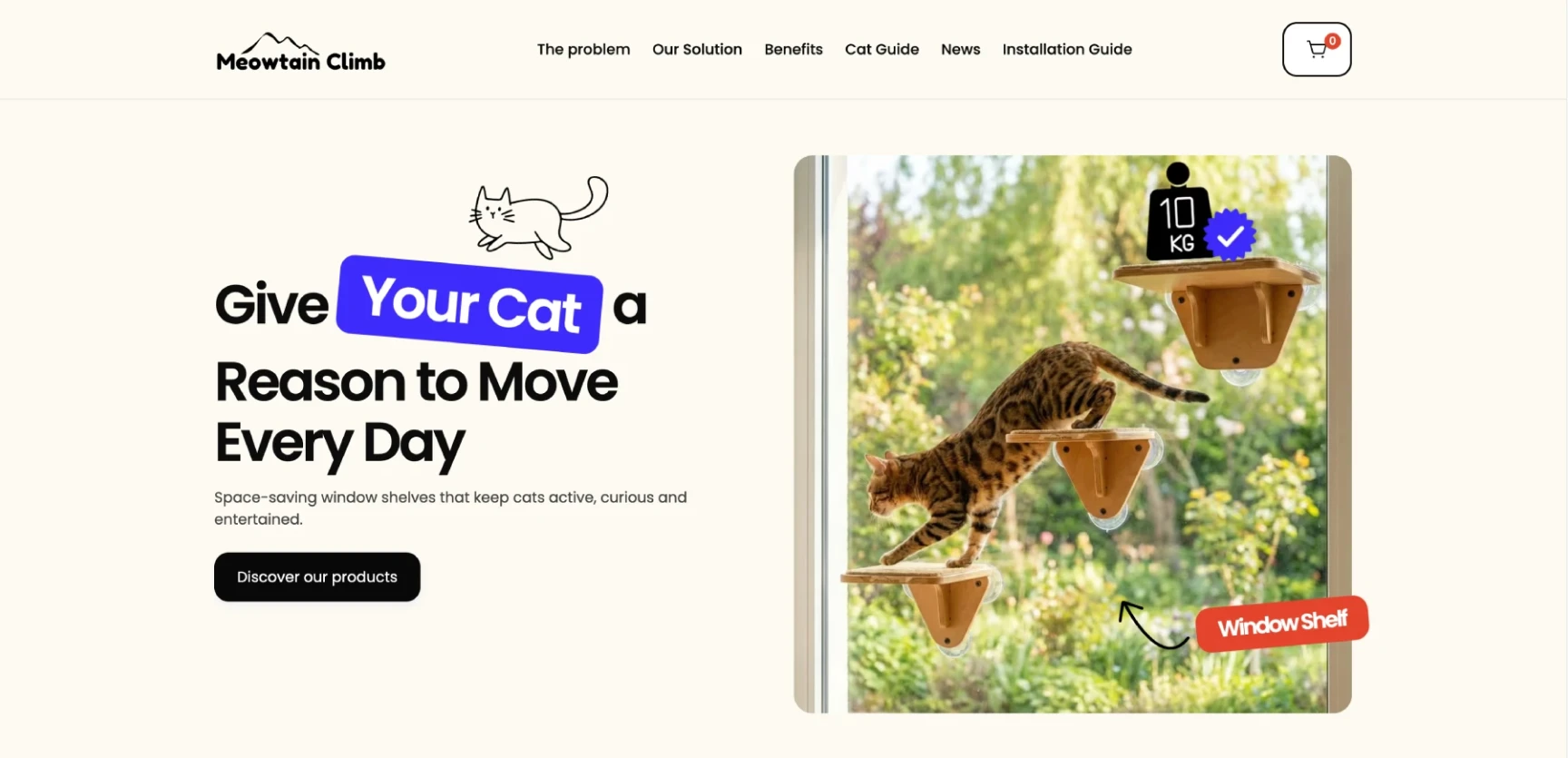 Meowtain Climb – Lietuvoje pagaminti produktai kačių aktyvumui palaikyti. Ant lango stiklo tvirtinamos medinės lentynos ir platformos suteikia katei erdvę judėti, lipti ir stebėti pasaulį iš aukštai – be jokių gręžimo darbų, tad puikiai tinka butui. Produktas buvo stiprus, o prekės ženklo energija – aiški. Mūsų užduotis buvo padėti surasti, kaip visa tai išreikšti skaitmeniškai: kokiu stiliumi kalbėti, kokiomis priemonėmis veikti ir kokia architektūra remtis.