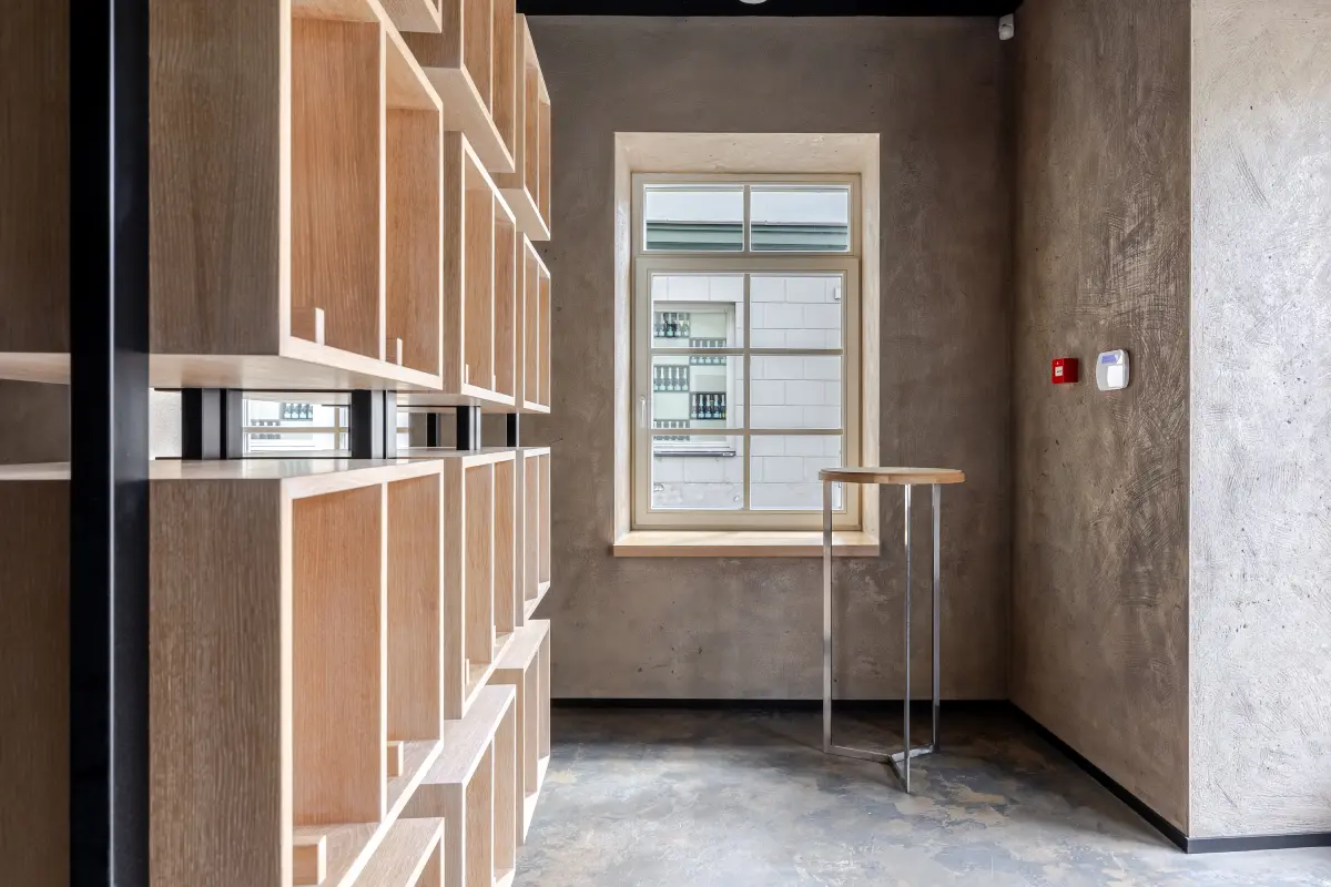 Vizualinę kryptį grindė du principai: istorinė dvasia ir minimalizmas. Sans serif šriftai su elegantiškais kontrastais perteikia pastato amžių ir solidumą. Šilta, neutrali spalvų paletė – be perteklinių akcentų – kuria orią atmosferą, kurioje fotografijos kalba pačios.